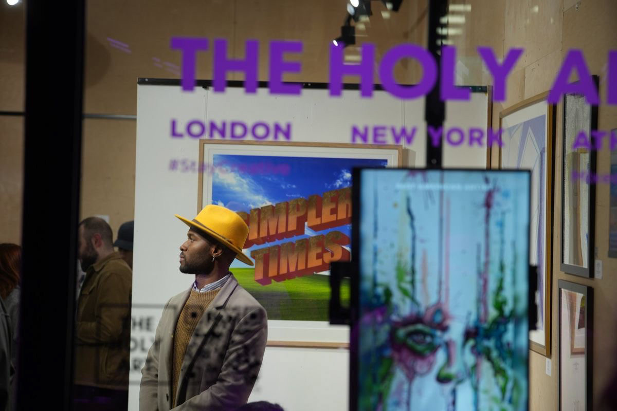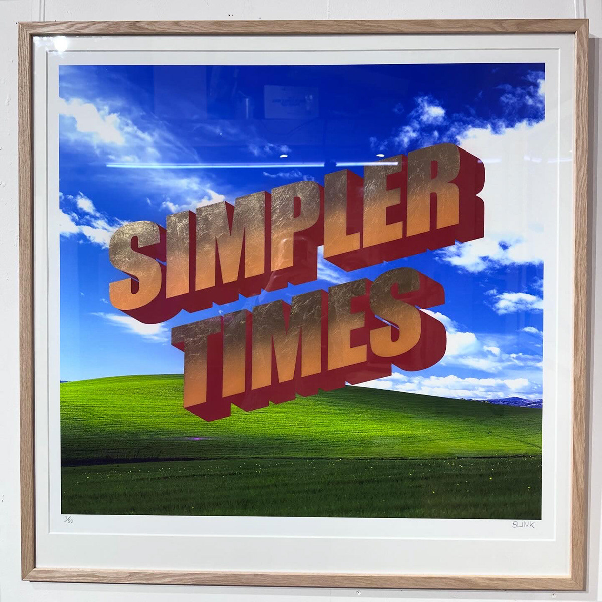 ‘Simpler Times’ 90 x 85 mixed medium print, digital giclee on minuet 300gsm paper with silkscreen and gold leaf detail. Edition of 50. It was exhibited at Holy Art Gallery in East London in December 2023.